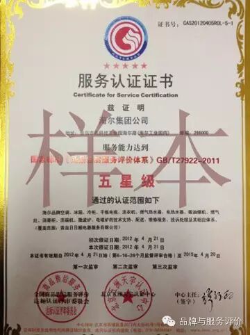 北京五洲天宇认证中心从事售后服务认证的依据是《商品售后服务评价体系》(GB/27922)。该国家标准于2011年12月30日由国家质检总局、国家标准委颁布,2012年2月1日起实施。国家标准认证工作开展以来,已有海尔集团、美的日电集团、红豆股份、厦门航空、万和电气、爱玛科技、深圳联创等近百家大中型企业获得了国家标准服务认证星级证书。